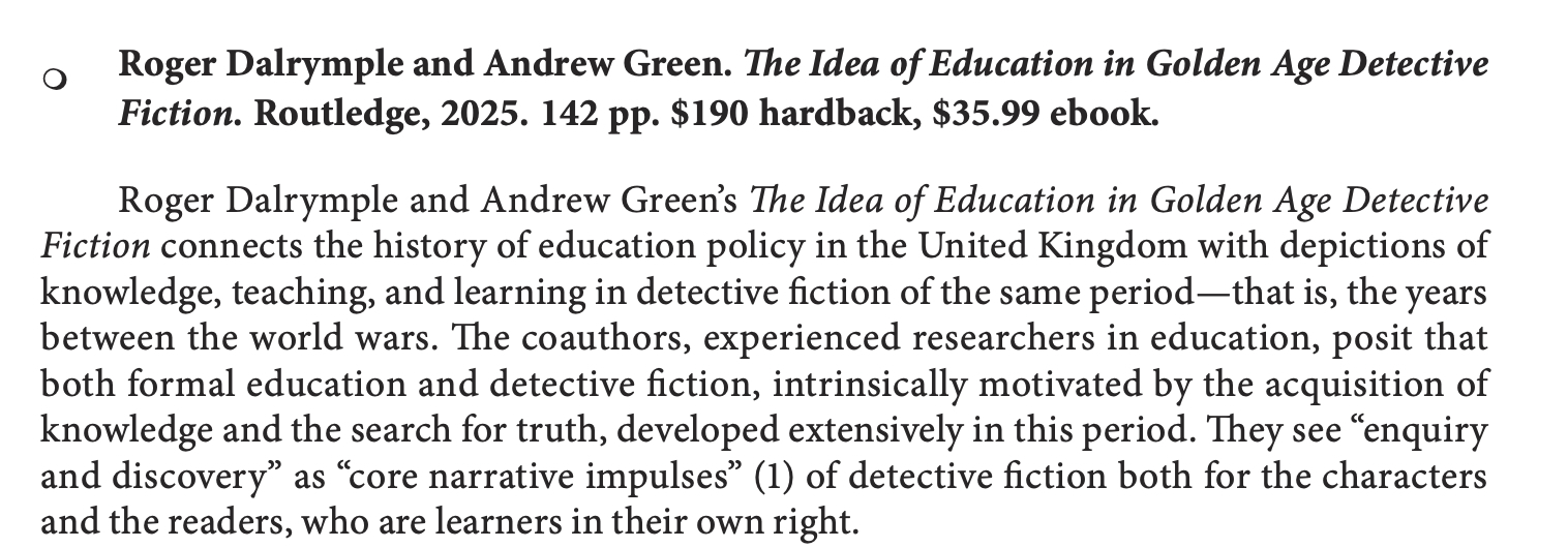 Roger Dalrymple and Andrew Green. The Idea of Education in Golden Age Detective Fiction / Meike Heinrich (Freie Universität Berlin)