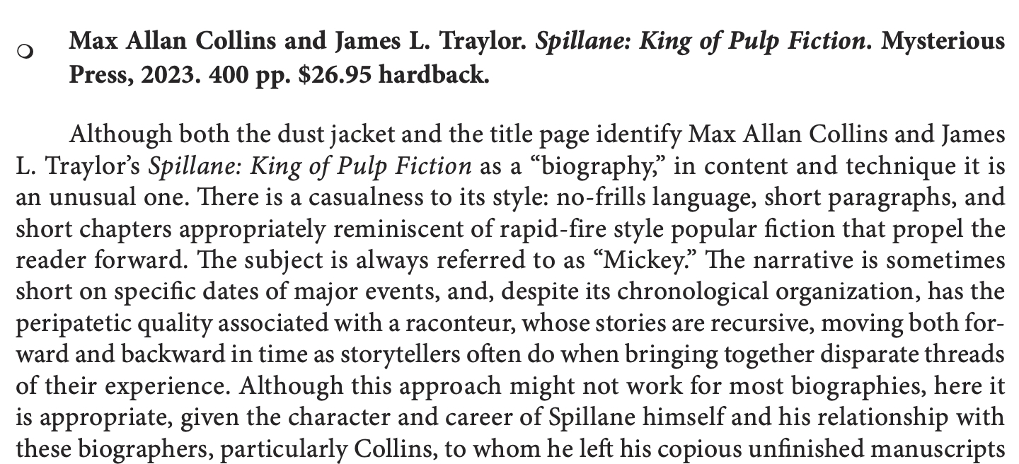 Max Allan Collins and James L. Traylor. Spillane: King of Pulp Fiction / Diane M. Calhoun-French